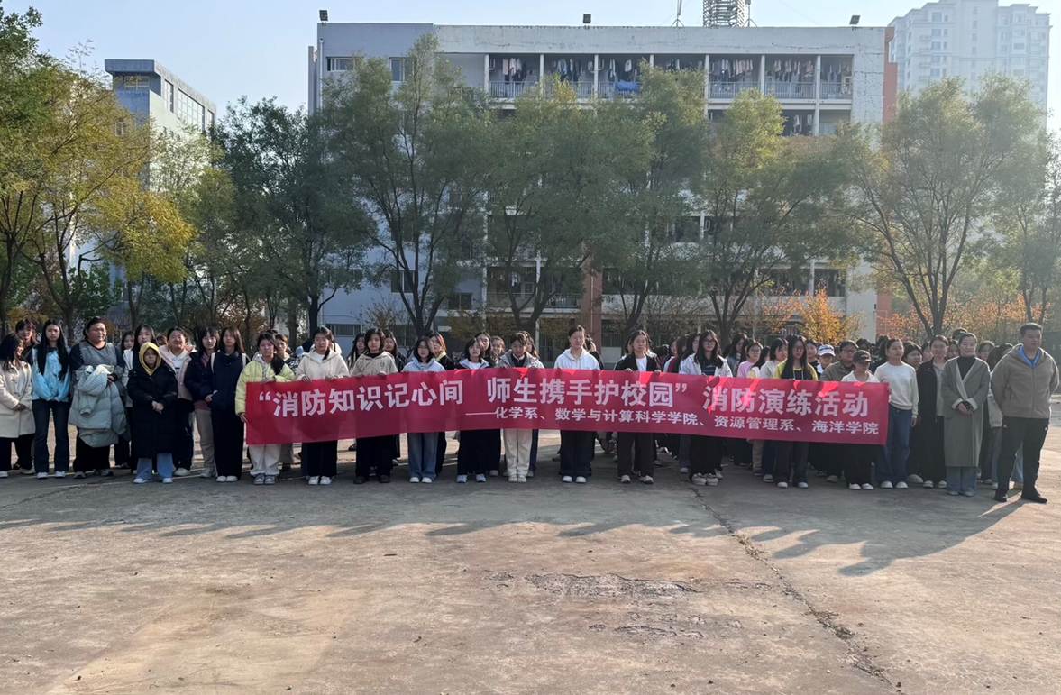 为进一步强化学生宿舍消防安全管理,提升全体学生的防火自救意识和应急处置能力,切实筑牢校园安全防线,2025年11月4日下午两点,数学与计算科学学院联合资源管理系、化学系以及海洋学院开展“消防知识记心间,师生携手护校园”消防演练活动,共计120余名学生参加。